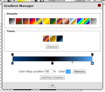 Open the gradient manager in the file menu, create your own gradient style through gradient editor in the dialog. In the gradient editor, you are free to add/modify color or alpha stops and middles.