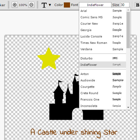 Switch to text tool, open text font chooser from toolbar where you can get the added custom text fonts. Just type text on image with your favorite font now.